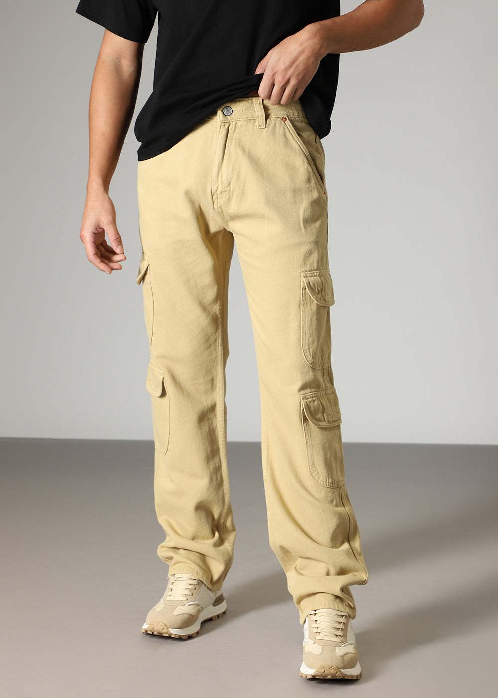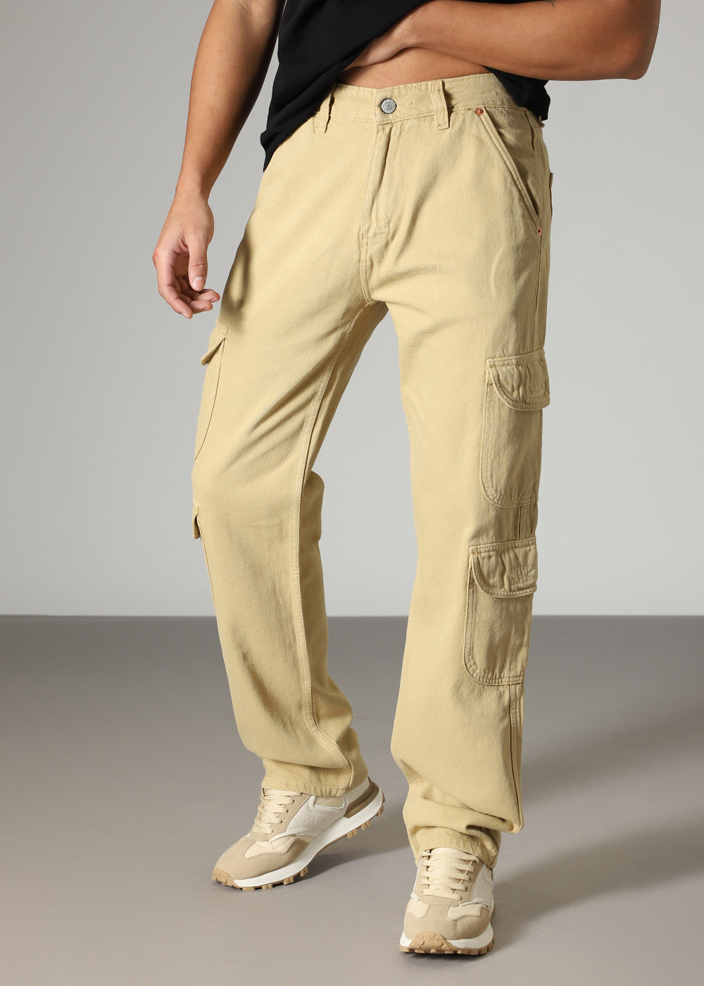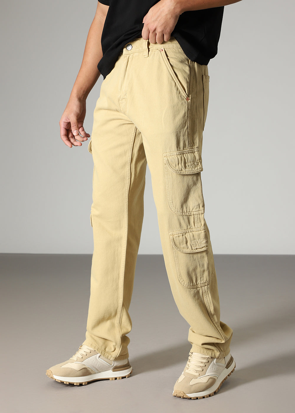 Beige Double Pocket Cargo Denim