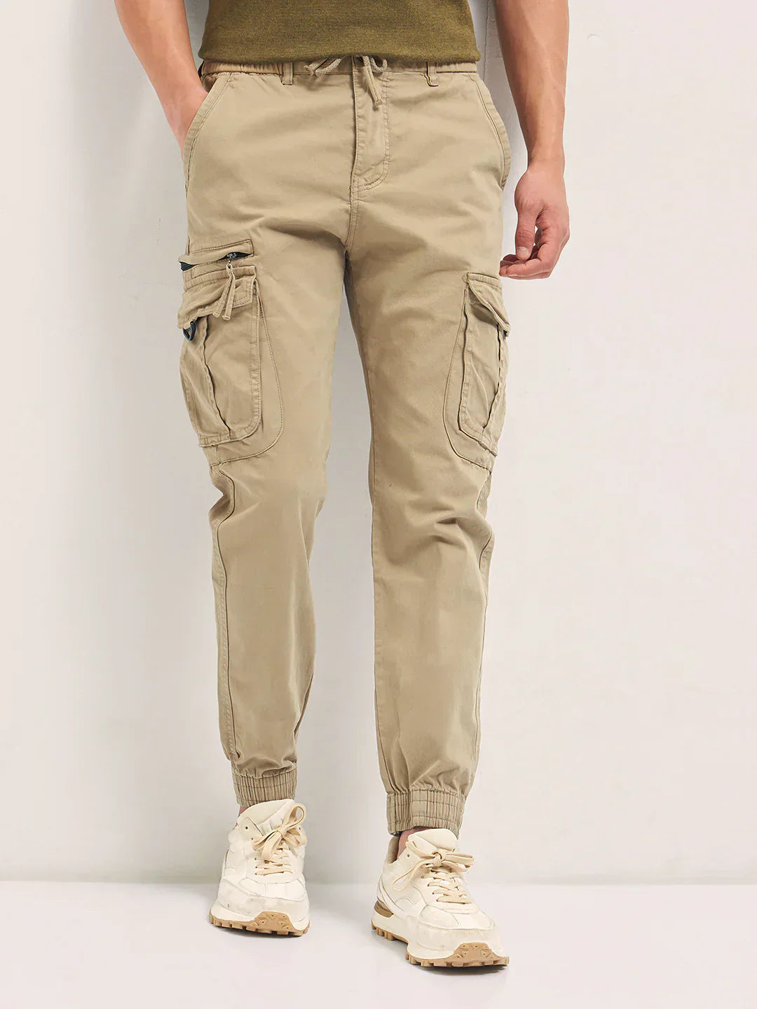 Beige Regular Fit Cargo Pants with Multi-Functional Pockets