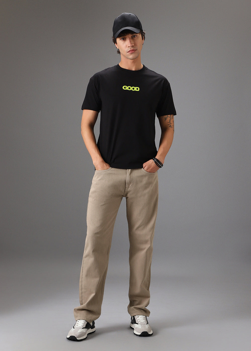 - Regular waist and a zip fly.