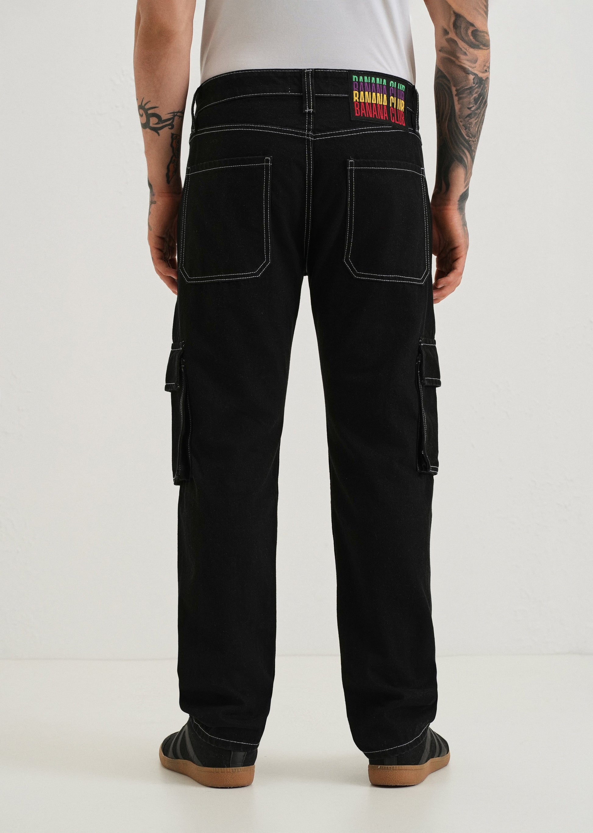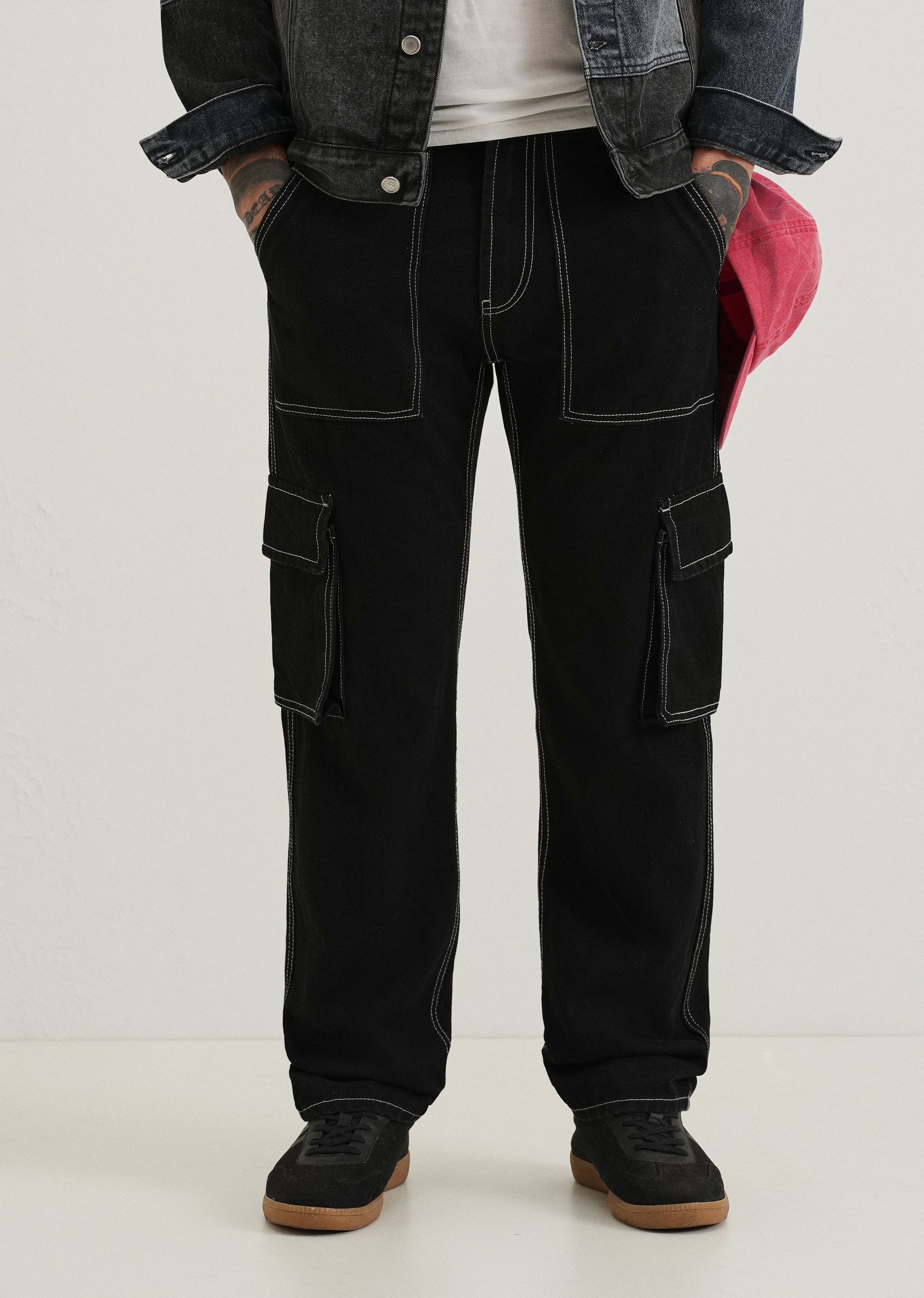 Black Contrast Stitched Denim Cargo