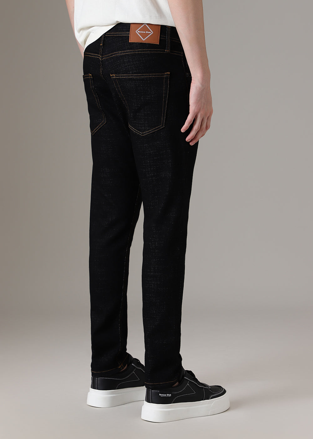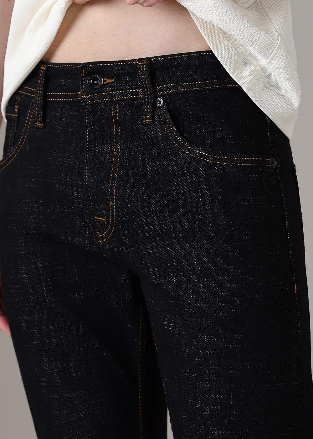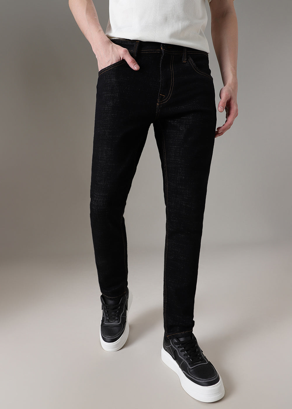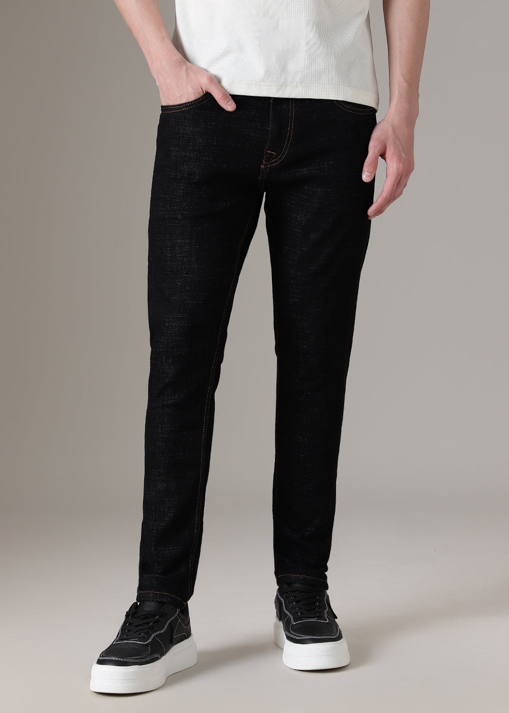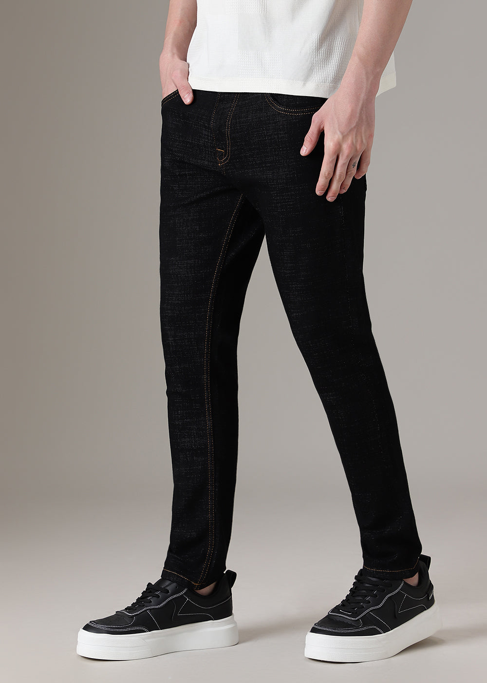 Black Contrast Thread Slim Fit Denim