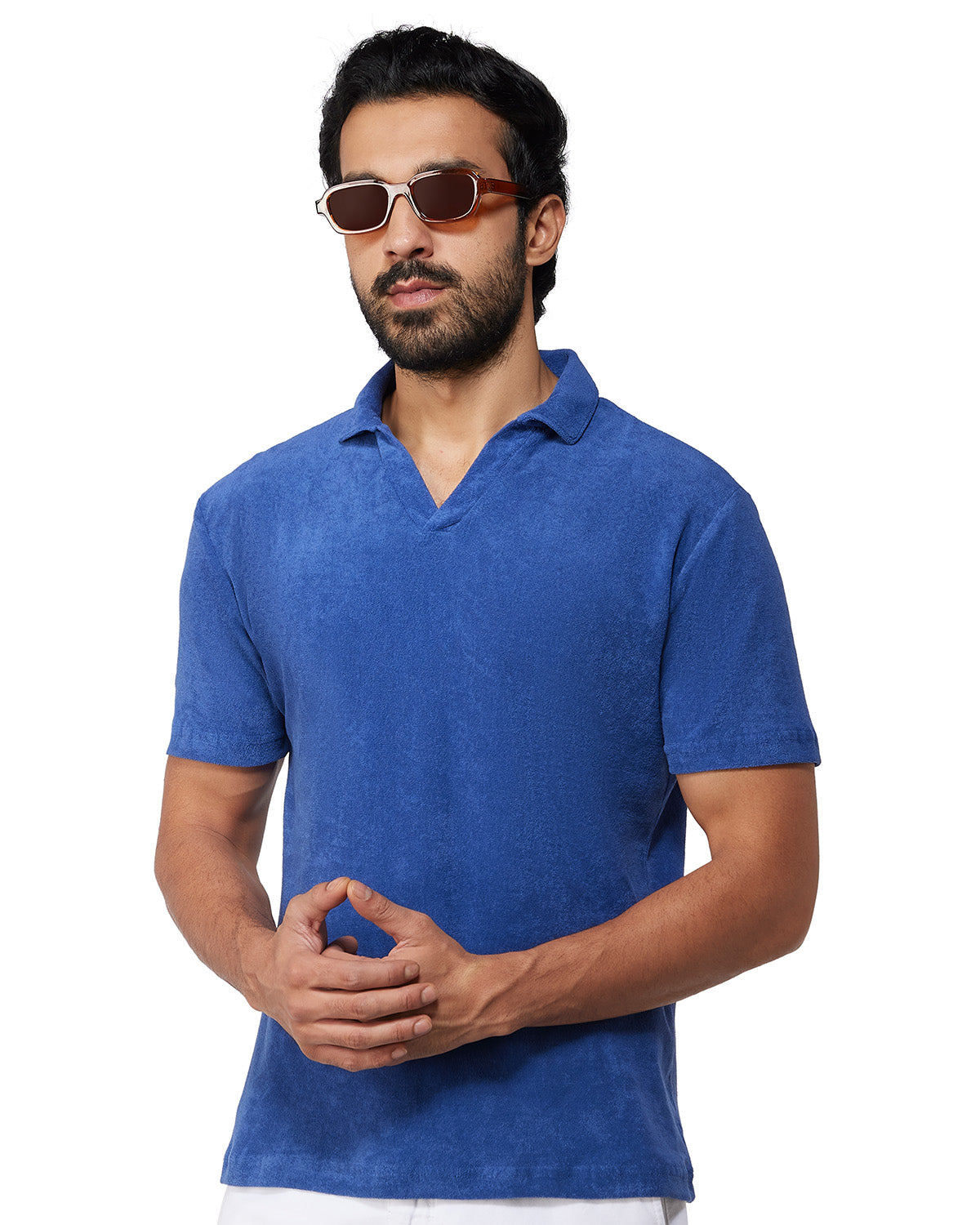 Signature Terry Towel Polo T-Shirt - Dark Blue