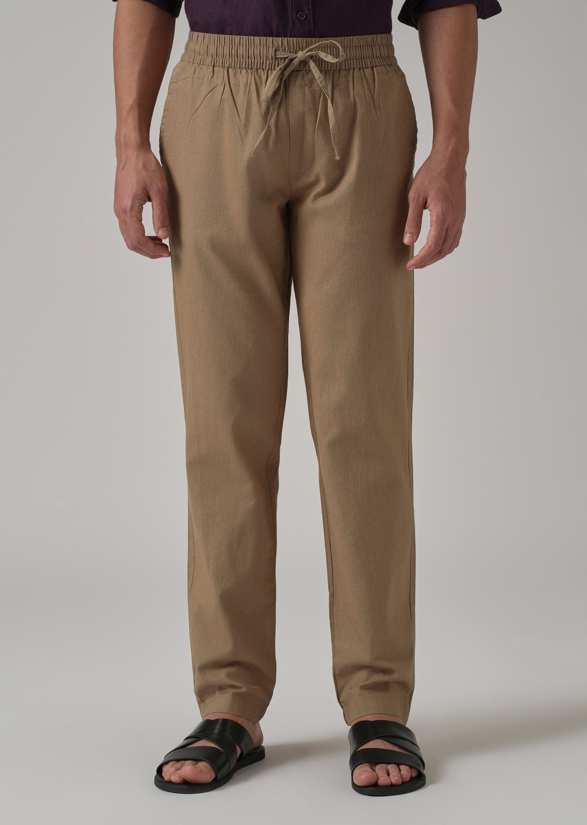 Drawstring Beige Linen Pant