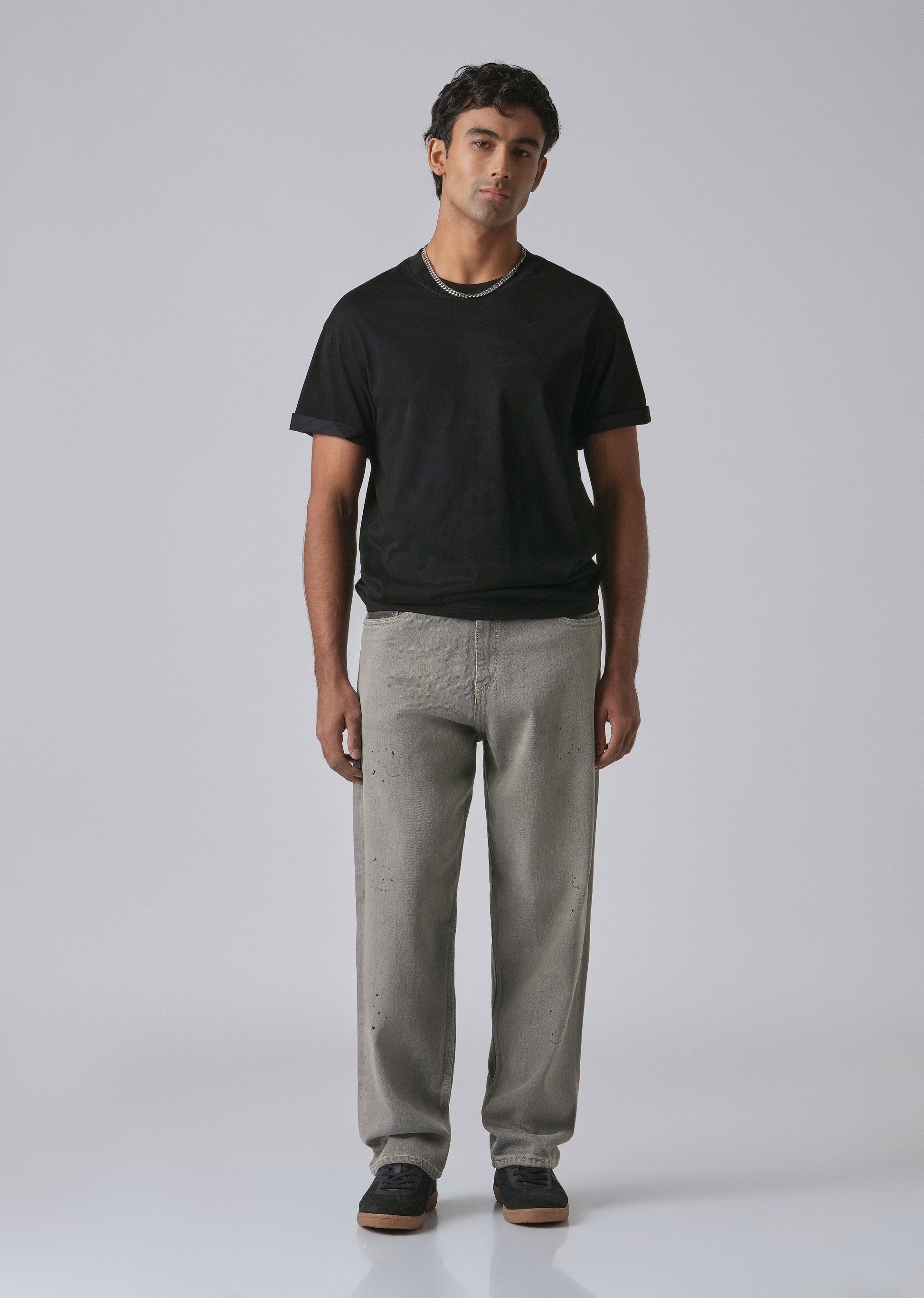 Grey Splatter Straight Fit Denim
