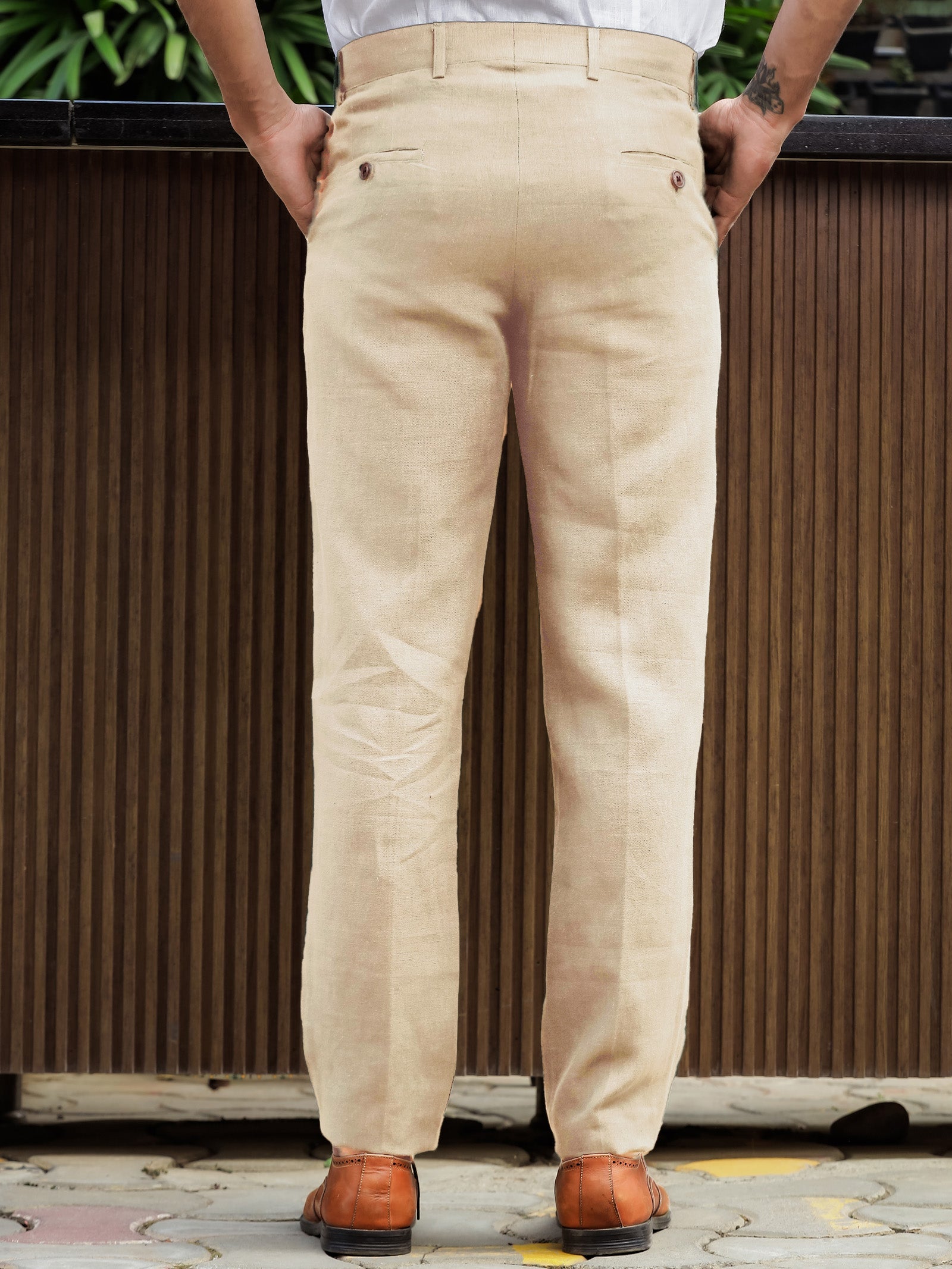 Hal Classic Pleated Pure Linen Trousers - Cappuccino Beige