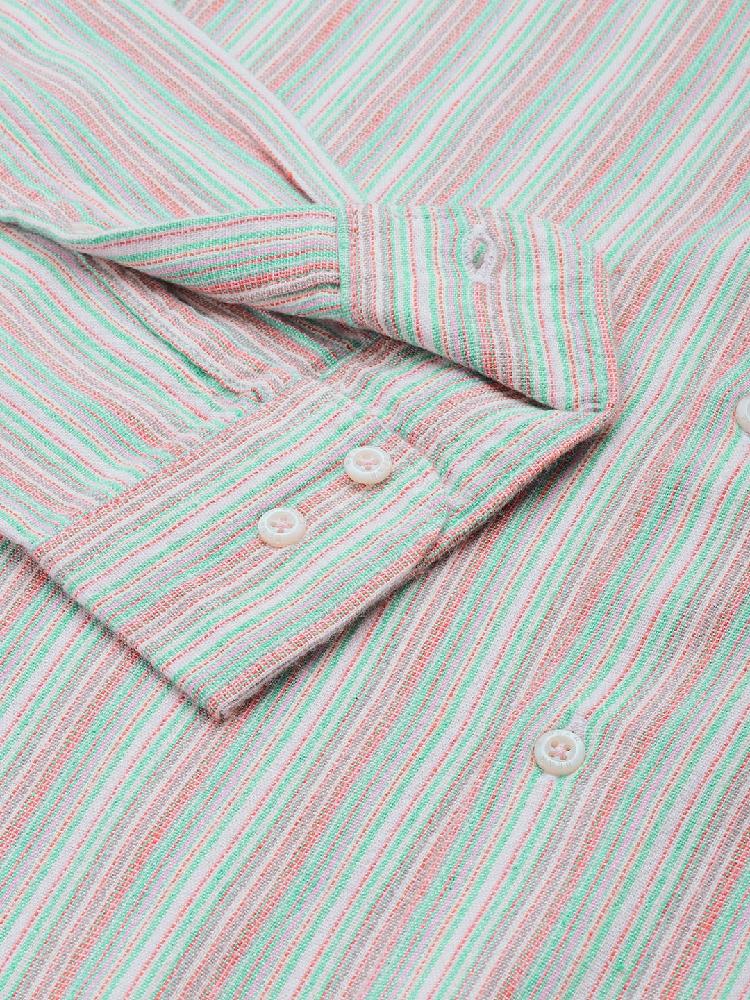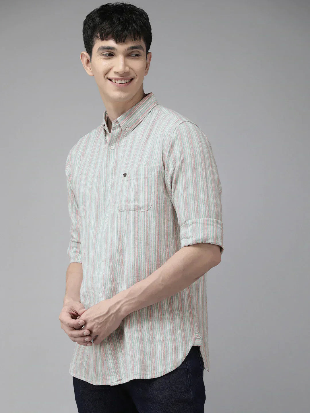 Men Grey & Pink Slim Fit Striped Casual Shirt