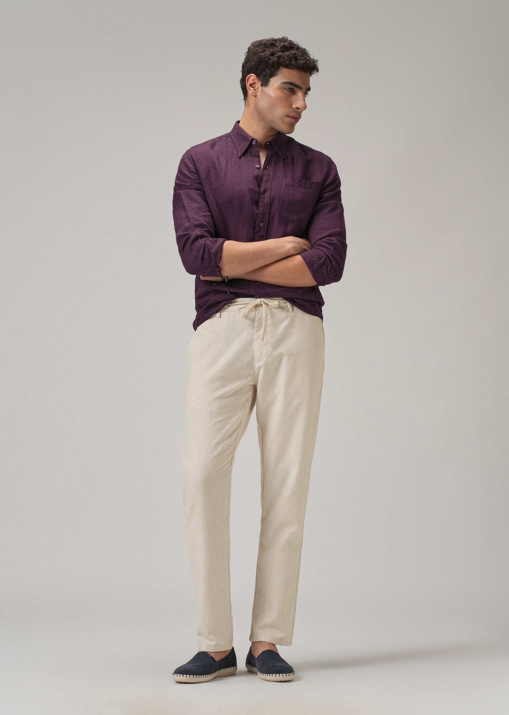 Designed for movement and made to keep up - these trousers feature an elasticated waist with a concealed drawstring, so you get a clean look without losing comfort. Crafted in a blended linen fabric, with belt loops and four functional pockets, this pair balances laid-back feel with everyday polish.