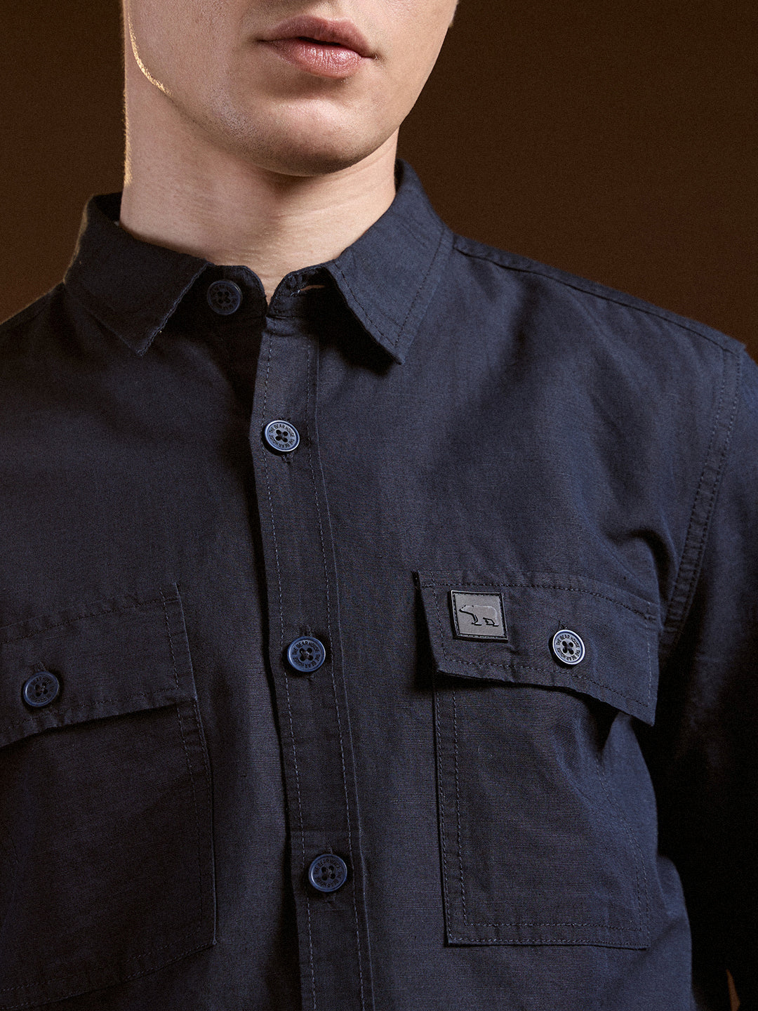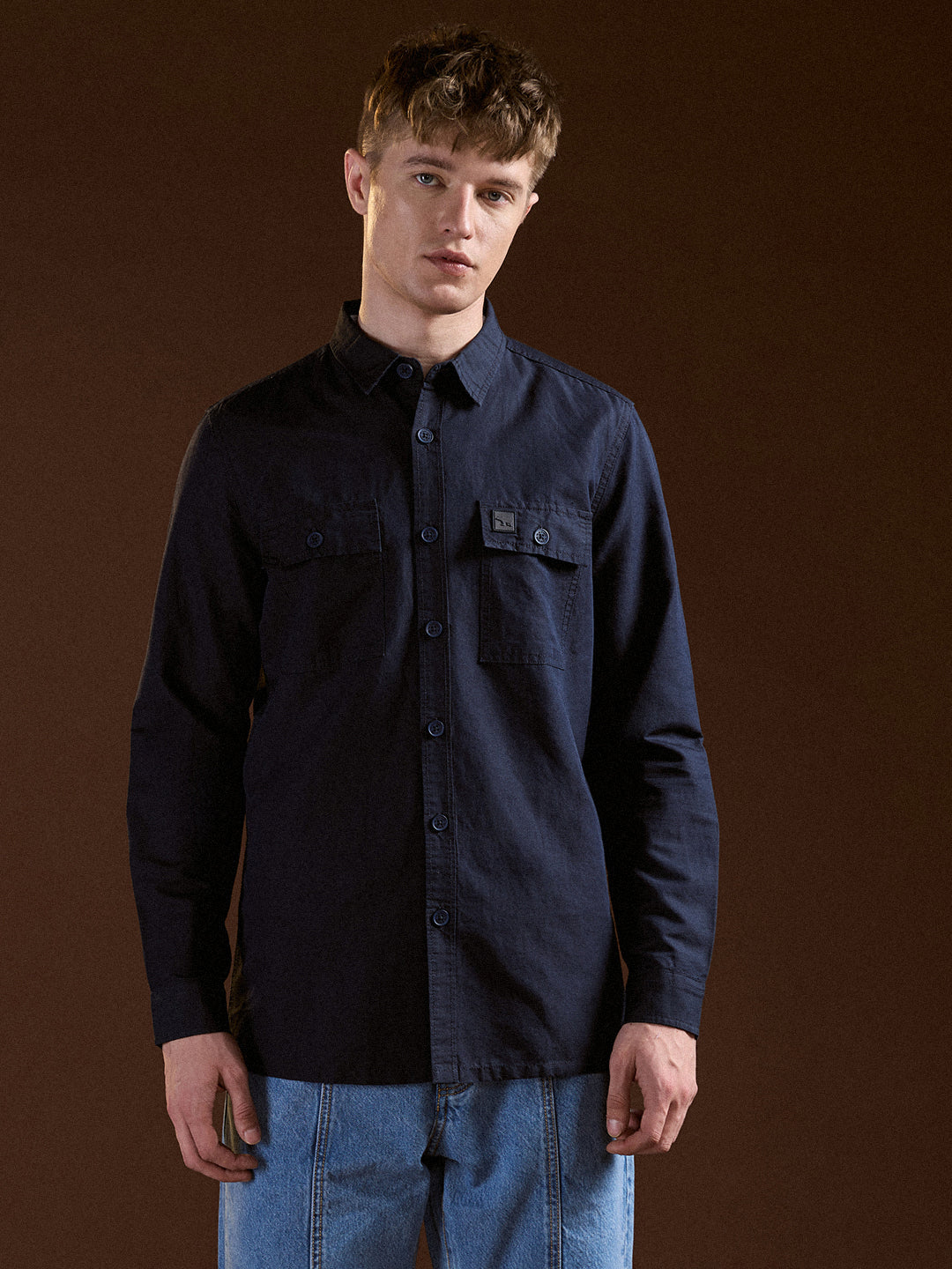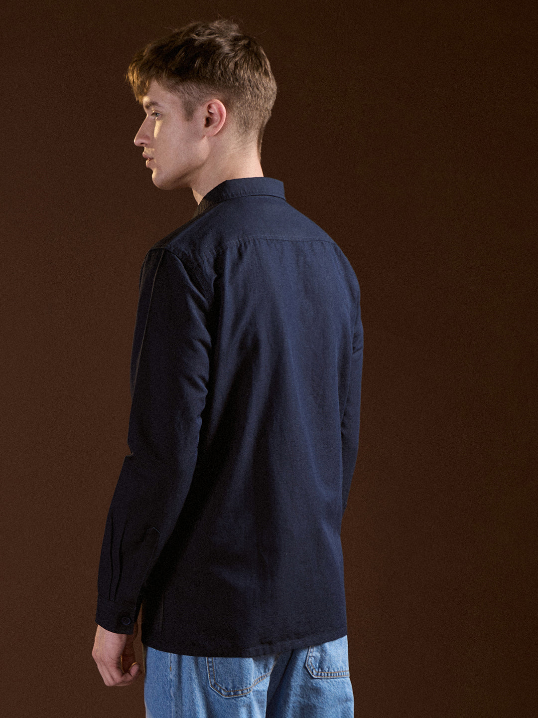 Blue Solid Slim Fit Casual Shirt with Flap Pockets