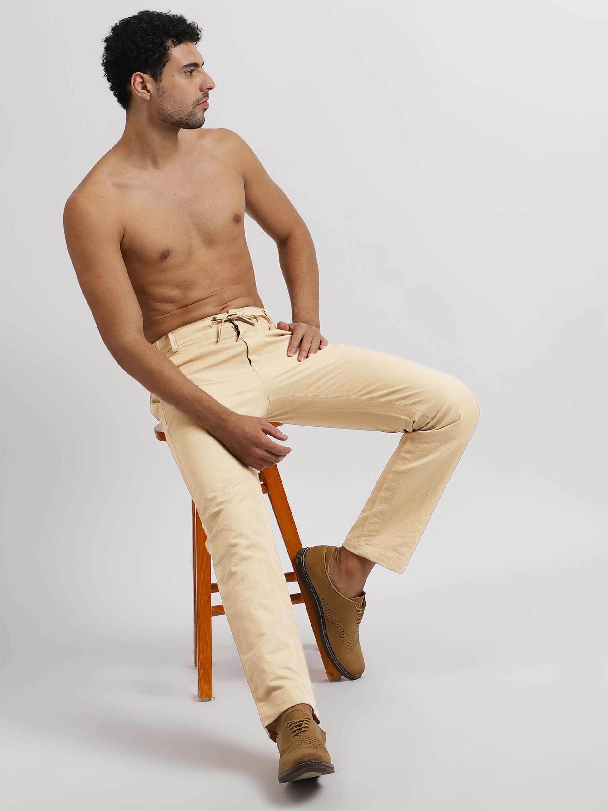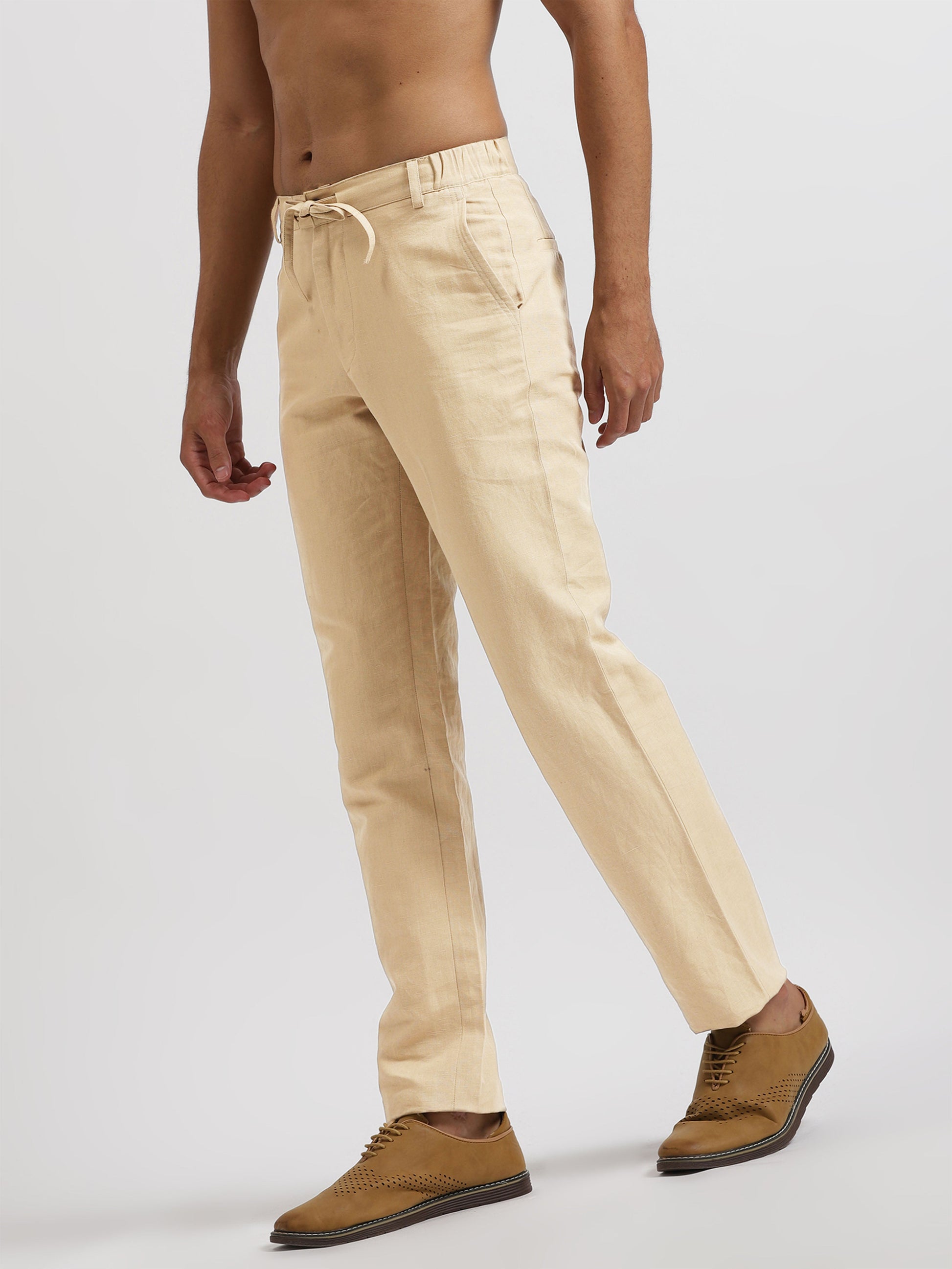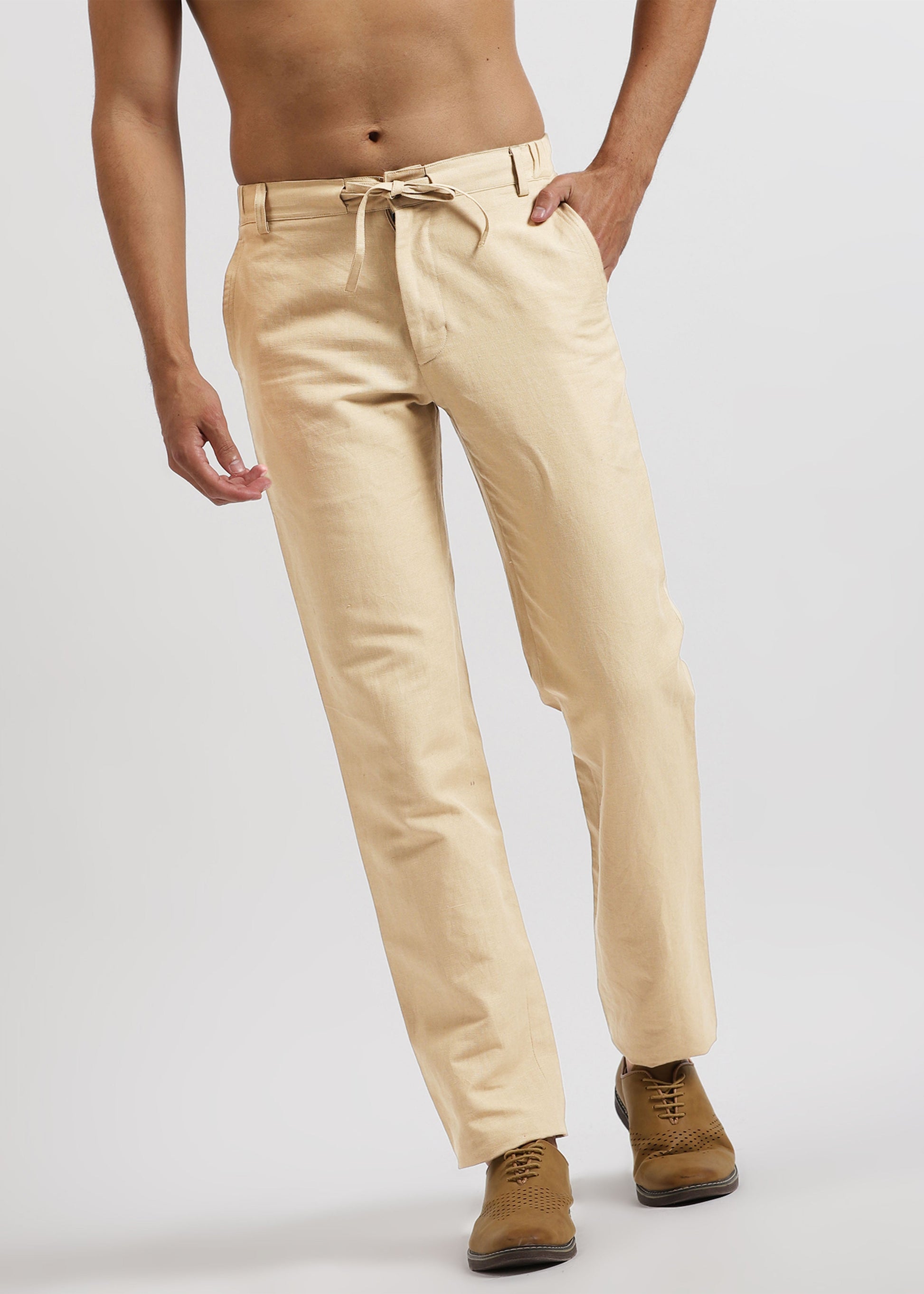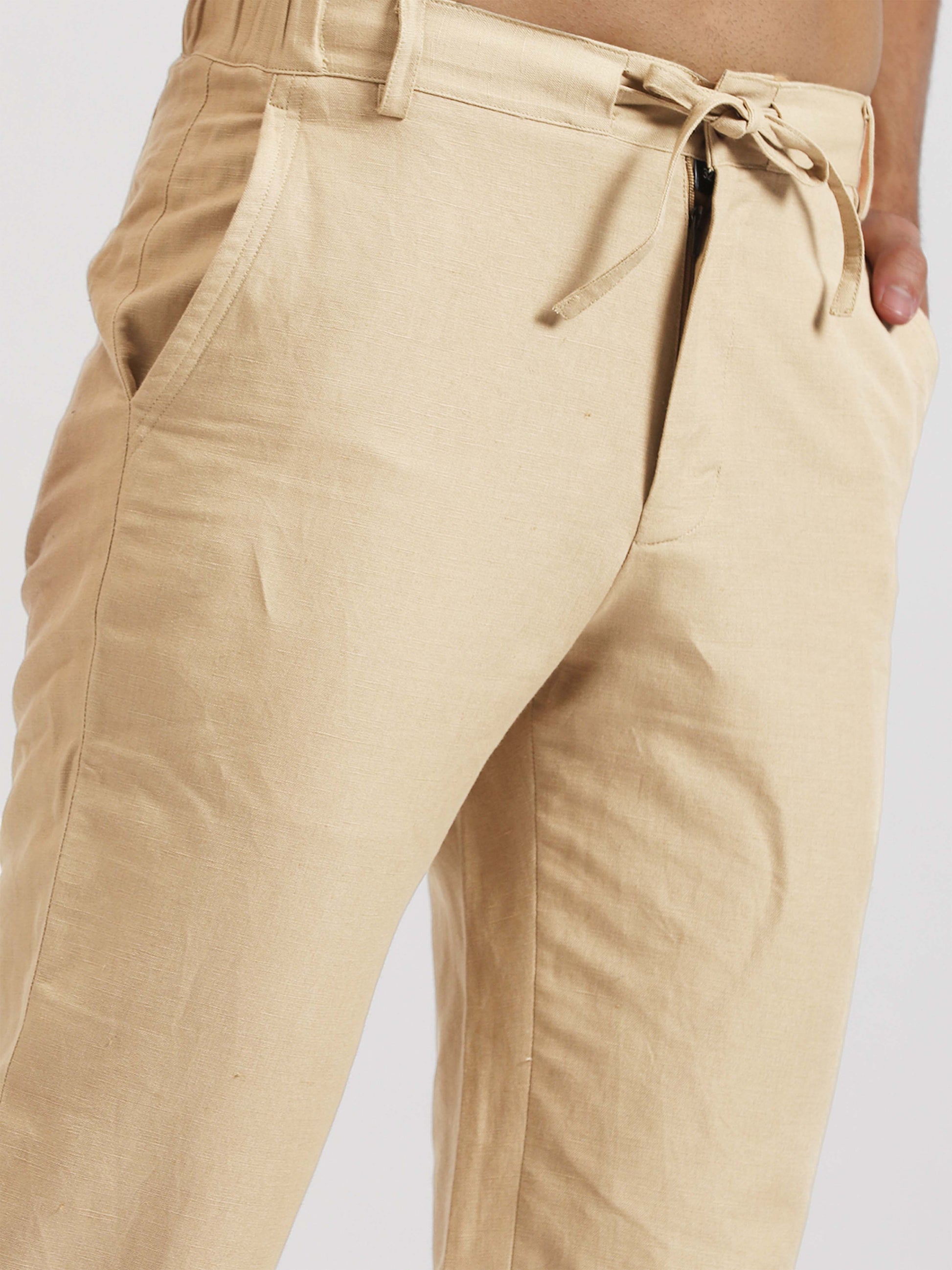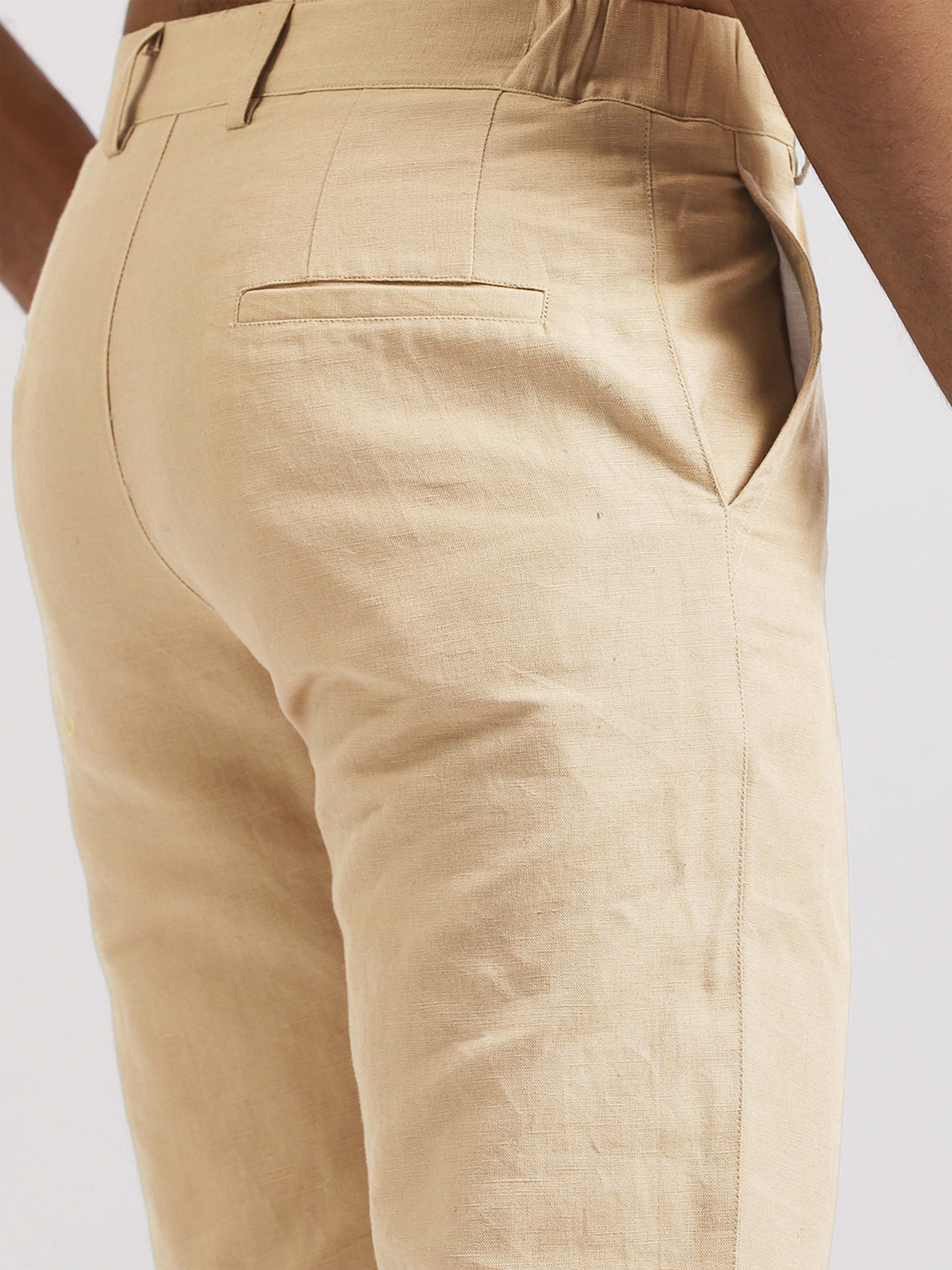Introducing the Theo - Linen Travel Pants in Cappuccino Beige. These tailored fit pants feature 4 pockets and side elastic, making them the perfect travel companion. Stay comfortable and stylish on-the-go in these versatile linen pants.